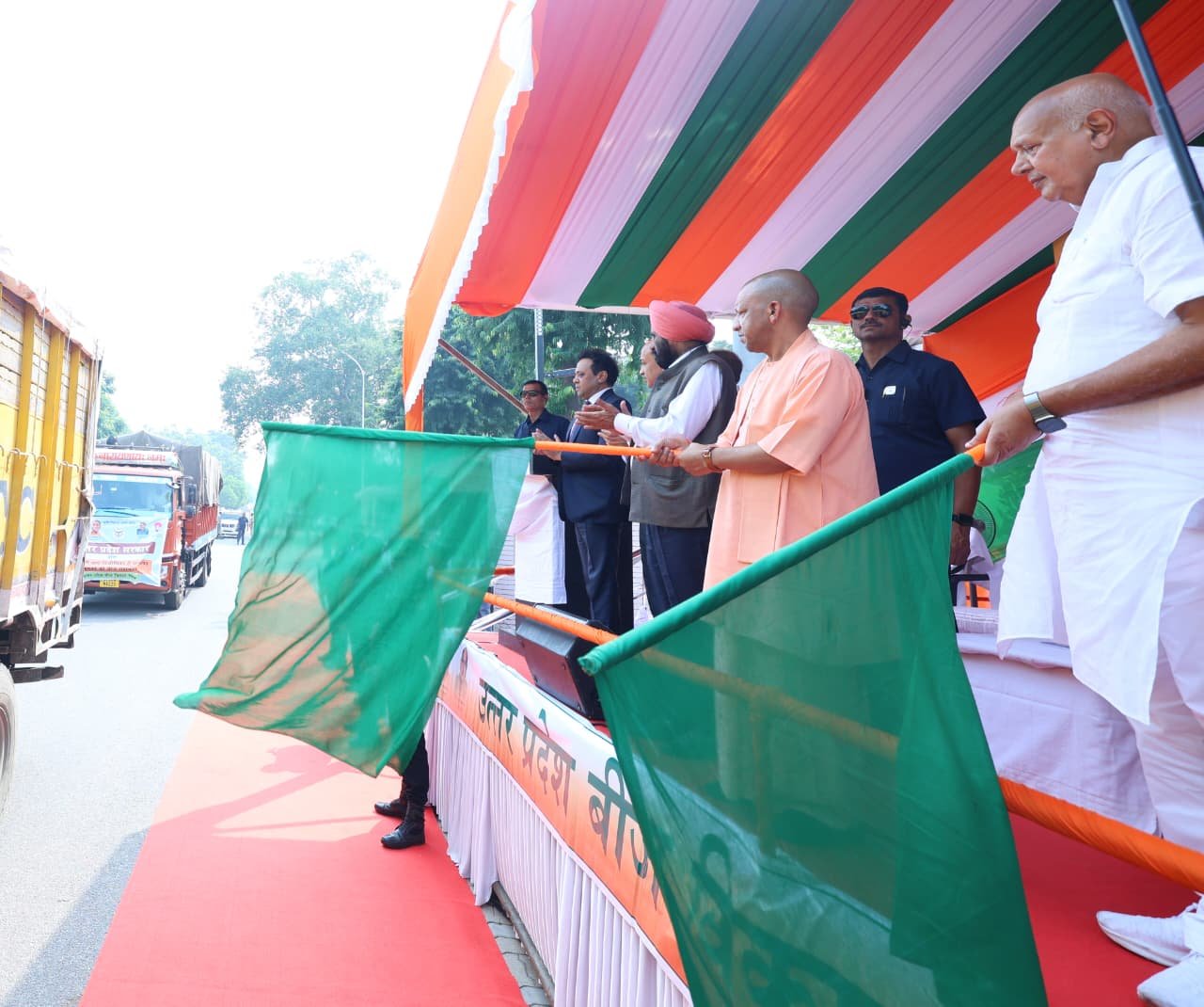 लखनऊ। उत्तर प्रदेश के मुख्यमंत्री योगी आदित्यनाथ ने मंगलवार को अपने सरकारी आवास से पंजाब के बाढ़ प्रभावित किसानों की सहायता हेतु गेहूं के बीज लदे वाहनों को हरी झंडी दिखाकर रवाना किया। मुख्यमंत्री आदित्यनाथ ने इस अवसर पर कहा कि दीपावली का पर्व पूरे उत्साह, उमंग और शांतिपूर्वक वातावरण में मनाया जा रहा है। उन्होंने कहा कि दीपावली का पर्व पूरे उत्साह, उमंग और शांतिपूर्वक वातावरण में मनाया जा रहा है। उन्होंने कहा कि उत्सव का वास्तविक आनंद तभी है, जब हम किसी पीड़ित को जोड़कर उसकी सहायता के लिए खड़े हों। उन्होंने कहा कि इसी भावना के साथ आज इस कठिन समय में उत्तर प्रदेश सरकार पंजाब के अन्नदाता किसानों के साथ खड़ी है। उन्होंने कहा कि आपदा का सामना पंजाब के किसान अकेले नहीं करेंगे।
